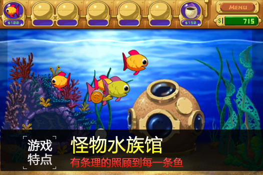 怪怪水族馆,是一款与鱼打交道的游戏。游戏的秘诀在于投资,要想赚更多的钱就不要吝惜你的钱,珍贵的鱼种会给你带来丰厚的回报。同时,游戏也遵循自然界食物链的法则,大鱼吃小鱼,小鱼吃虾,其乐无穷。