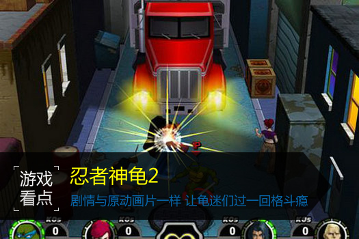 忍者神龟2并肩作战是一款3D的格斗类游戏。玩家需操纵4个忍者神龟进行战斗,最多可进行4人格斗。只需在电脑里插入键盘或游戏手柄(或下载虚拟键盘),在选人画面时就会出现4个框框,1、2、3、4P都有。其剧情与原动画片一模一样,让龟迷们过一回格斗瘾。