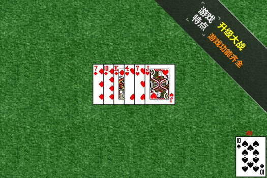 升级是国内非常盛行的一种4人扑克牌游戏,该游戏选择的是一副扑克.游戏界面直观漂亮,功能齐全,非常好玩哦.