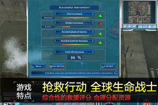 《抢救行动》是关于公共救援的模拟型游戏,游戏主题是处理各种紧急突发事件。游戏中玩家面对的是紧急事件处理中心,鼠标点击中间或左下的三个屏幕分别能进入事发地点和各职能机关,你必须派遣相关的人员和装备前往。