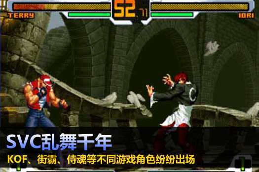 SVC乱舞千年:《SNKVSCAPCOM》 ,以SNK和CAPCOM两家街机2D格斗大厂的人物之间的大乱斗为卖点,吸收了很多高人气人物,圆了一个KOF迷和SF迷的梦。