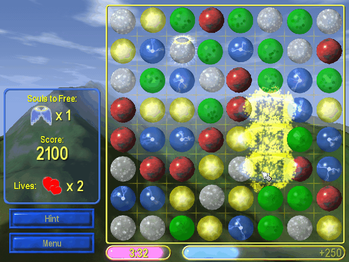 男巫用魔法的泡泡俘虏了他们的灵魂,并将这些泡泡放在空中,为了释放这些灵魂,你要将三个或更多的同类泡泡配对,你可以得到很多神奇的能力来帮助你更加快速的破解男巫的咒语。