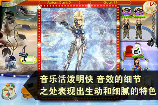 本作继承了“PuzzleLab”上一款模拟游戏《Posh Boutique》的规则,并在此基础上换取了全新的故事主题,在细节游戏上添加了更多新颖的元素和玩法。还原物品的解谜关卡加入是本作的一大亮点。 玩家要在游戏中完成7部电影的拍摄,每个关卡由模拟和解谜2部分组成。模拟关卡充满挑战性,循序渐进的难度会使人变的手忙脚乱;解谜关卡相对简单,点击亮光点收集物品,再进行基础的逻辑还原即可。除此之外,本作还包括充实的设施和人员的升级系统,以及多项奖杯收集。