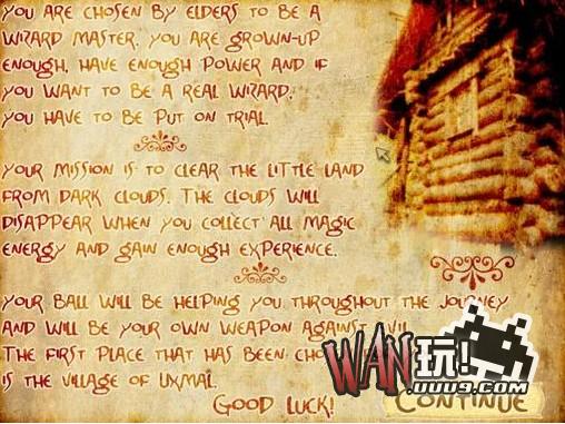 作为长者挑选出的精英巫师,你正在日益成长和壮大。但要成为一名真正的巫师,拥有更强大的力量。你需要先通过考核。你的任务是去清除小土地上的乌云,当你收集了所有的魔法能量,并获得了充足的经验时,乌云将自动驱散。