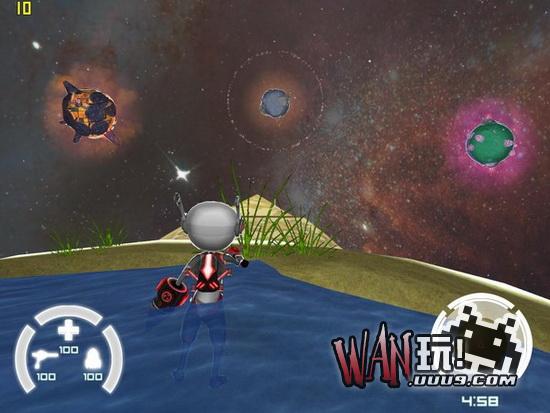 《搅乱全宇宙》是一款十分卡通、十分有趣的第三人称视角射击游戏,游戏中角色造型设计的很独特,却很可爱,电音的萝莉和正太. 很有爱的小游戏,游戏的舞台背景是广阔的宇宙,玩家可以使用背后的飞行器进行自由翱翔,甚至进行星球间的时空穿越.在游戏中,你将能充分的感受到地球是个圆的。另外需要注意的是可不要被神出鬼没的敌人偷袭了。