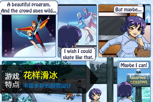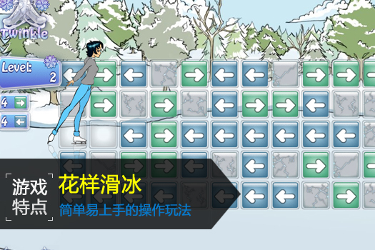 花样滑冰是一项充满美与力量的体育赛事,在这项运动中,你要从各种特技动作中选择六种动作进行组合,创造一套完整的滑冰动作,看看全部完成以后你能获得多少分吧。