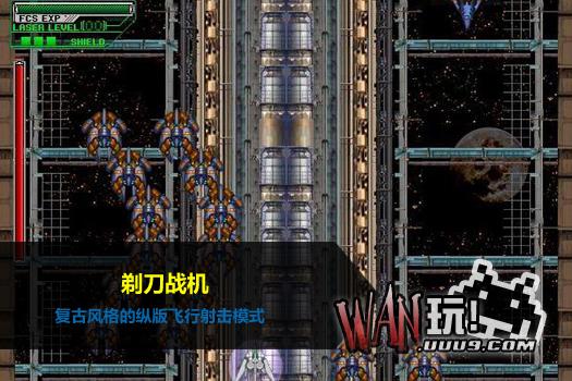 《剃刀战机》是一款纵版飞行射击游戏,游戏中玩家要击败多个关卡的各种不同敌机和BOSS,战机可以使用两种不同的武器攻击,躲避子弹和运用射击技巧是游戏过程中的最主要的部分