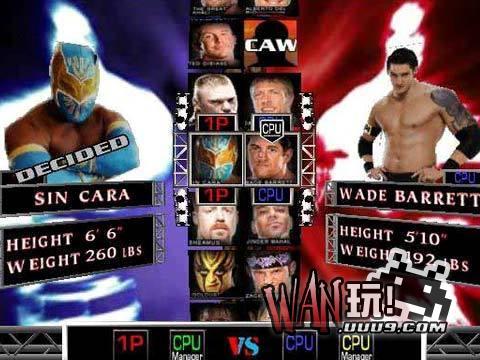 游戏中有不同的比赛类型可供选择,其中包括一对一比赛、职业性摔角(两人一组)、龙卷风、三项全能、可致人于死地的四向赛、混战、障碍赛、淘汰式锦标赛等等。其中大多数都是标准比赛,有一些需要做一点解释。"三项全能"比赛指的是将三个摔角手互相攻击,不过你只要打倒其中一个摔角手,就可以赢得比赛,这其实蛮难的,因为除了你之外,另外两个摔角手不是由计算机控制。
