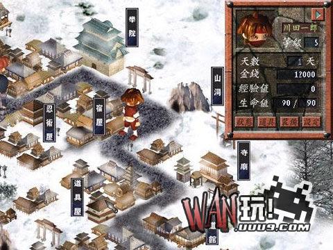 《忍者学园》也是个带有暴力成分的大富翁,并且在战斗中使用不同角度表现战斗场面,就如同卡通片的画面。最异于普通大富翁游戏的是游戏中的人物属性设计,有经验值、攻击能力、防御能力各项属性,给人感觉象是角色扮演游戏。 《忍者学园》的操作方式是传统的掷骰子模式,按照投出的点数决定移动步数。游戏的目的是将主角培养成一流忍者,所以没有地皮买卖和房屋建造,每一处停留所能得到的是各种突发事件带来的好运或厄运:也许是金钱的增减,或许是经验值的增减,也或许是各种卡片。 卡片是《忍者学园》必不可少的元素,得到卡片的途径除了上面所说的随机派发以外,可以在代表着机会和命运的格子中抽取,也可以在商店里面购买。卡片的外观比较精致,不同的功能配合千奇百怪道具去整人是最合适不过了,不过得小心别弄巧成拙,没有害成对手反而帮了他的忙。 《忍者学园》突发事件的产生相当搞笑,使游戏不至于枯燥乏味,增加了游戏乐趣。但是场景和人物的造型就不那么有趣了,场景是3D建模再贴图的,人物造型是卡通风格的,很粗糙,如同木偶般。没有使用Q版造型的人物一点都不可爱,身体边缘还有明显的锯齿。 感到很不满的是卡片和事件的文字说明窗口显示的时间太短,还没看清楚就消失了,因为窗口是电脑自动关闭的,不受玩家的控制。而且游戏的设定中没有讯息显示时间的选项,万一有重要的信息错过了你哭都没用。 《忍者学园》的主角是为了替父报仇才进入忍者学园刻苦训练,要在一连串的剧情发展中增加经验值、升级,最终练成绝技挑战仇家。在学习过程中遭到一位女同学的猛烈追求,主角除了接受各种艰难挑战以外,还要和这位痴情的MM周旋,也为游戏增添了一些生活化色彩。