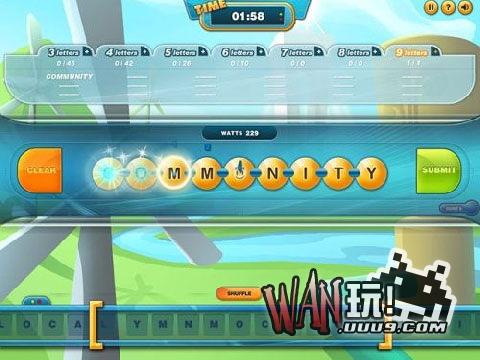 这是一款豪华的脑力游戏,它采用了最为流行的字母游戏规则,并结合了绿色能源大亨主题。开始经验你自己的绿色能源业务,建立一支先进的能源发电小队为当地城市供以动力。推翻贪婪的竞争者,帮助他们开启一场真正的绿色革命!