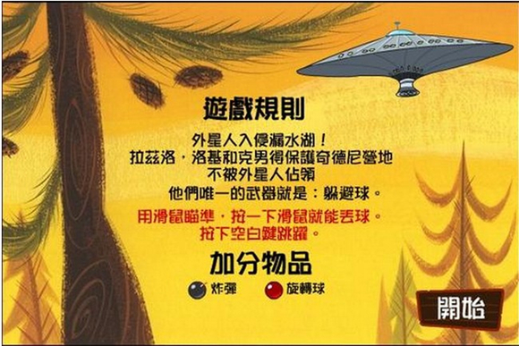外星人入侵了漏水湖,拉兹洛、洛基和克男准备一起保护奇德尼基地不被外星人占领。他们唯一的武器就是3个闪避球。让我们来为他们加油吧!让我们帮助他们一起打败外星人吧!