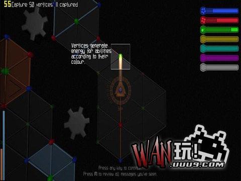 这是个另类抽象的即时战略游戏. 玩家操控一个几何体通过控制顶点,围成几何平面的方式扩张领地,甚至可以使用声东击西等策略来牵制比自己强大的对手. 是个攻防并重的新颖战略游戏.