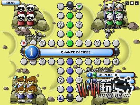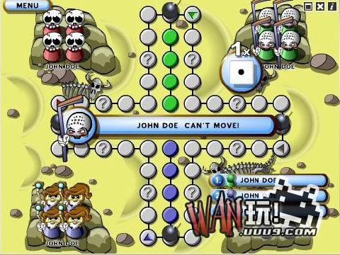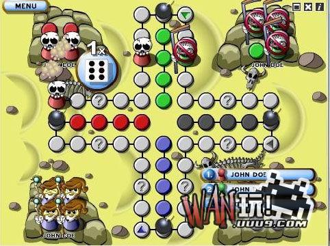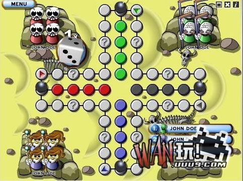 游戏规则跟传统的飞行棋一模一样,支持2~4人或者人机对战。角色和场景颠覆了传统样式,感觉非常的精致。游戏棋盘很小,道具丰富,电脑的攻击很主动,所以对战相当激烈。 游戏中每家有4个棋兵,谁4个兵最先到达目的地谁就赢(每一家的目的地各不相同,用颜色区别,大本营是什么颜色目的就是什么颜色)。