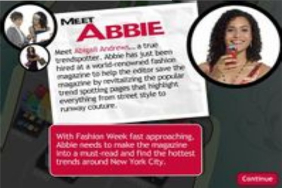 在游戏中,你将遇见Abigail Andrews这位真正的时尚达人。女主角Abbie刚刚被一家知名时尚杂志社聘用为编辑,帮助她运用你的寻找发现技能,和明锐的触觉去工作。找出纽约市最流行的趋势,提高杂志的销量。