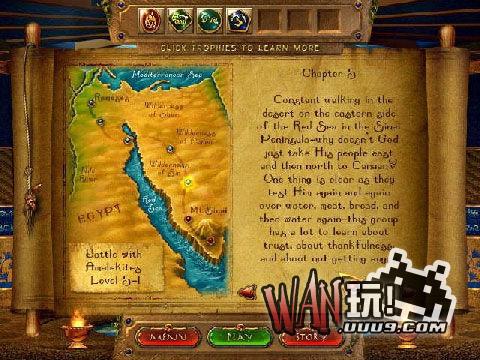 Jewels of Sinai将带给你一场愉快的旅程,从古代埃及,跨越红海,穿越燃烧的沙漠一直驶向西奈山。你需要匹配相同颜色的宝石,快速的工作。如果你具有超强的解谜技能,你将解锁西奈山珍宝的秘密,并揭示人们对自由和和平呼声。 画 面: 细腻的游戏画面采用了3D渲染效果,漂亮的场景逐渐变换,游戏中各种消除小标志刻画精美。画面用色鲜艳华丽,背景画面呈现出壮观的建筑物, 随着关卡推移展示出不同的风景图象。 声 音: 游戏音乐张弛有度,动听的背景音乐充满异域风情,并有丰富的旋律变化配合游戏,音效更是出色,具有恢弘而真实的表现,细节之处也刻画细腻。 上手度: 游戏的过关规则是清除所有的背景色块,并使乌云图形落出盘面。在操作上需要玩家把相邻的图案进行交换,3个或更多的相同图形可以消除,具有很高的上手度。 创 意: 西奈山珍宝规则为经典的交换消除,以全新的主题和完整的故事情节线索吸引玩家对游戏的进行,此外并没有太多的创新,游戏给人的感觉和七大奇迹颇为类似。 可玩性: 游戏中包括50个充满挑战性的关卡,带有精美插画的圣经故事情节。随着不同数量的消除,将产生众多有利的道具帮助过关。优秀的外在表现和简单的玩法提高了游戏的休闲乐趣。