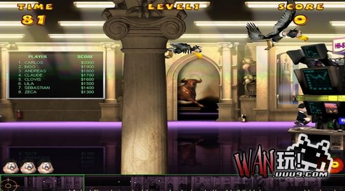 《神鬼秃鹫》是2003年的一款射击小游戏,在一家银行里面遭到了秃鹫的打击,必要你吧这些秃鹫打下来,不过你手中只有番茄。游戏需要你用番茄打击那些在飞的秃鹫,掉在地下的秃鹫跟银行职员是不能打击的,打击他们会扣除一些分数,还有番茄只有20个打完了必要按鼠标右键来上“子弹”。非常幽默搞笑的一款小游戏,休闲好东东。