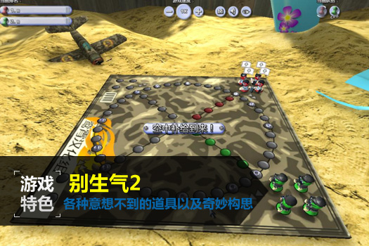 本次强烈推荐3D版的飞行棋,这款经典的游戏早已经流传了很多年了,玩家对于飞行棋的喜爱可以借这款游戏得到升华。这个版本的飞行棋既保留了传统的玩法,而且还开发出很多的道具来增加游戏的趣味性,多元素的声音以及多选择性地图的加入让这款游戏可玩性十足。