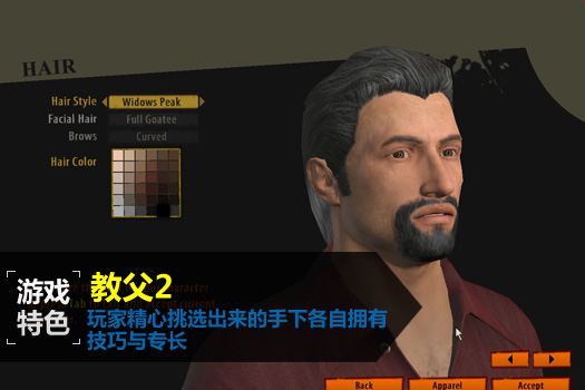 《教父2》将继续沿用前作受到欢迎的游戏机制,并彻底发挥招牌「黑手」操控界面,玩家将可呈现更贴近内心渴望的凶狠格斗,并体验全新的组合技系统、压制战术和处死手段。