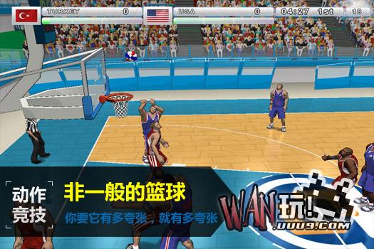 这里有你从未见过的篮球动作,比如几个队员迭罗汉、流氓式防守。卡通渲染的画面,有很多卡通道具,比如大手套等等。除了联赛外,还有三分大赛、一对一,等mini游戏。有自定义编辑器,有回放功能。